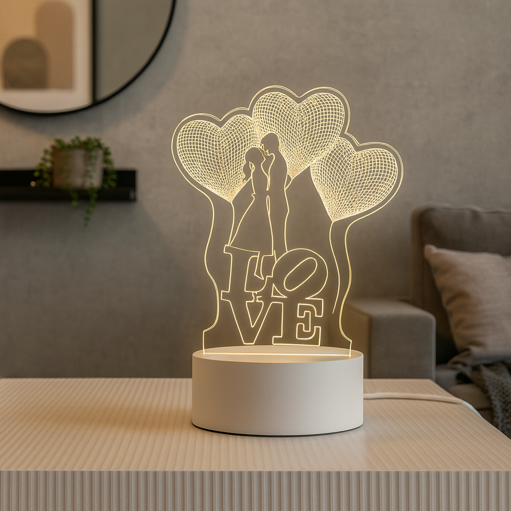 LoveGlow™ 3D Lamp dodaje przytulnego i nastrojowego światła, które pięknie uzupełnia wystrój każdego pokoju.